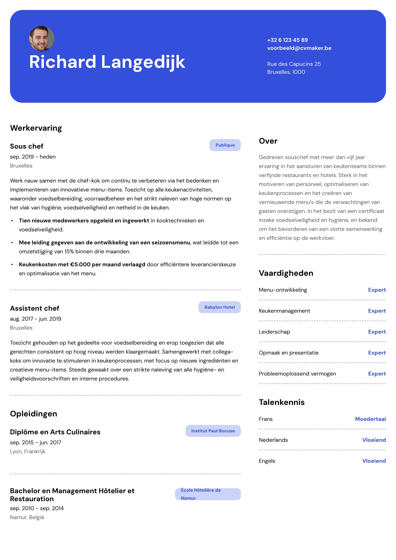 Je werkervaring is één van de belangrijkste onderdelen van je cv. Het is cruciaal om duidelijk aan te geven wat je precies hebt gedaan en wat je hebt bereikt, ongeacht of je nu souschef of chef de partie bent.
